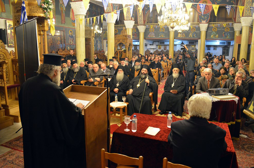 Εν συνεχεία ανεγνώσθη ο χαιρετισμός του Μακαριωτάτου Αρχιεπισκόπου Αθηνών και πάσης Ελλάδος κ.κ. Ιερωνύμου το οποίο και ανφέρει «Ακόμη πιο δύσκολοι και ανηφορικοί υπήρξαν οι καιροί, κατά τους οποίους προσέφεραν την διακονία του οι δύο επιφανείς και αγιώτατοι επίσκοποι Ακάκιος και Δαμασκηνός ο Στουδίτης.