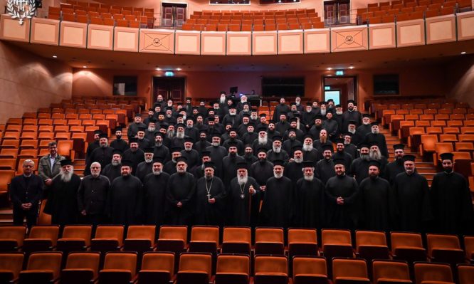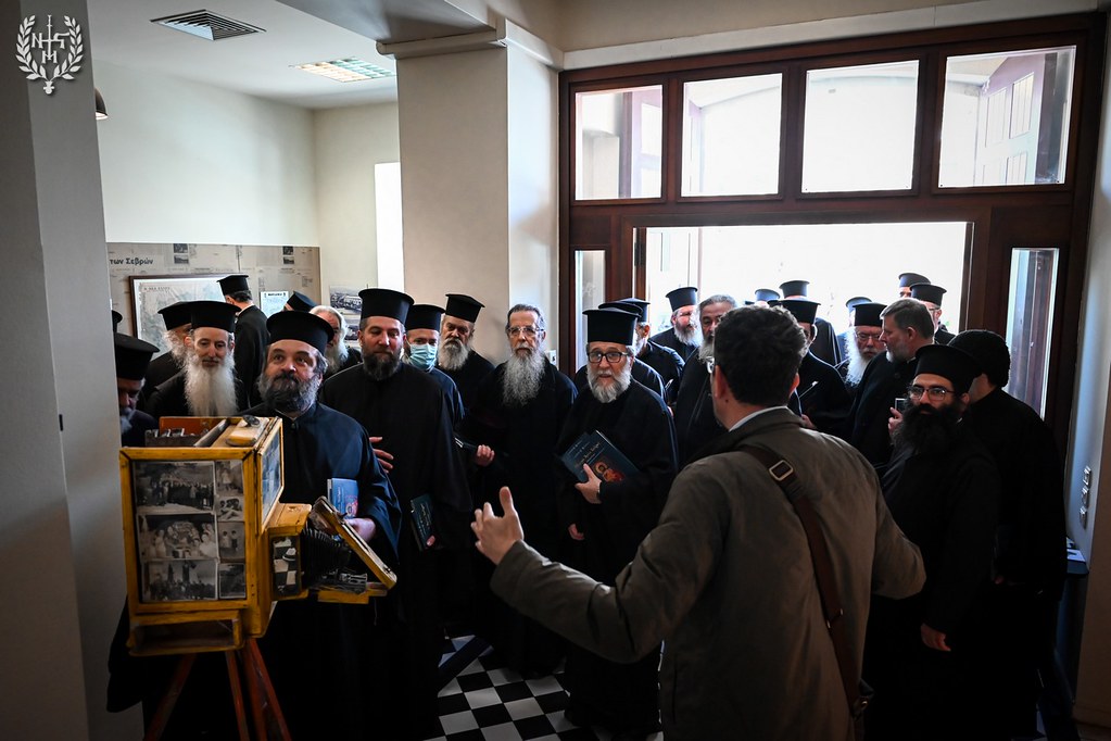 Η ξενάγηση πραγματοποιήθηκε στο περιθώριο της Ιερατικής Σύναξης, η οποία συγκλήθηκε στο χώρο όπου φιλοξενείται η Έκθεση, στις εγκαταστάσεις της Μονής Λαζαριστών, και συγκεκριμένα στην Κεντρική Σκηνή του Κ.Θ.Β.Ε. «Σωκράτης Καραντινός».