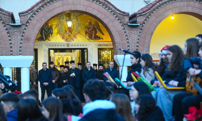 Με την πληθωρική παρουσία πολλών παιδιών των χριστιανικών ομάδων της Σερραϊκής Εκκλησίας, συνοδευομένων από τους γονείς τους, τους υπευθύνους ιερείς, τους κατηχητές και τις κατηχήτριες των ενοριακών Συνάξεων της πόλεως των Σερρών και της ευρύτερης Μητροπολιτικής περιφερείας, καθώς και των Βουλευτών Ν. Σερρών κ. κ. Αναστασίου Χατζηβασιλείου και Θεοφίλου Λεονταρίδη, του Διοικητού της 10ης Μηχανοποιημένης Ταξιαρχίας κ. Γεωργίου Λιάμπα, του Διευθυντού της Πρωτοβάθμιας Εκπαιδεύσεως Ν. Σερρών κ. Ιωάννου Καραβασίλη, Αντιδημάρχων, Δημοτικών και Περιφερειακών Συμβούλων, πραγματοποιήθηκε την Κυριακή 21 Δεκεμβρίου 2025, στις 5:00 το απόγευμα, στην πλατεία «ΜΗΤΡΟΠΟΛΙΤΗΣ ΜΑΞΙΜΟΣ» του ιερού Μητροπολιτικού Ναού Παμμ. Ταξιαρχών Σερρών, η φωταγώγηση του φυσικού έλατου, το οποίο εφύτευσε στο προαύλιο του Μητροπολιτικού Ναού προ 18ετίας ο Σεβ. Ποιμενάρχης της κατά Σέρρας και Νιγρίτα Εκκλησίας του Χριστού κ. Θεολόγος.