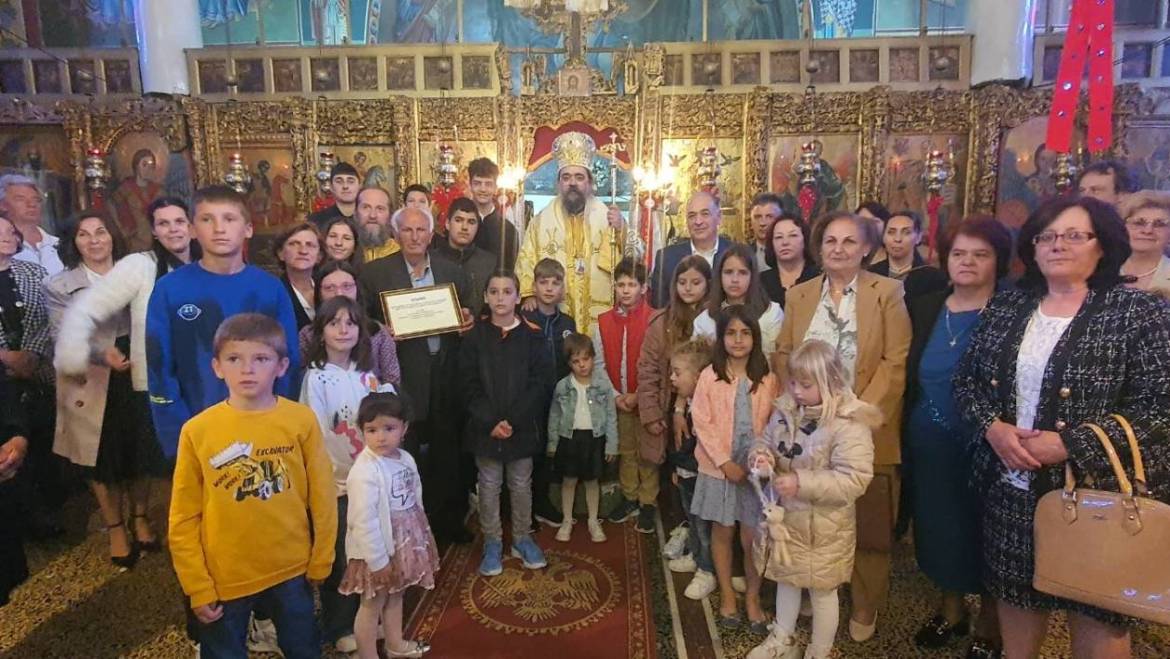 Πρὶν τὴν ἀπόλυση τῆς Θείας Εὐχαριστίας, ἡ Ἐκκλησιαστικὴ Ἐπιτροπὴ τῆς Ἐνορίας καὶ ὁ Σύλλογος Γυναικῶν τοῦ χωριοῦ, τίμησε διὰ τῶν χειρῶν τοῦ Σεβασμιωτάτου, τὸν κ. Λάζαρο Πρόϊο, ὁ ὁποῖος εἶναι μέλος τοῦ ἐκκλησιαστικοῦ συμβουλίου γιὰ 38 ἔτη, μέ ἐκκλησιαστικό φρόνημα καί γενικότερη κοινωνική προσφορά.