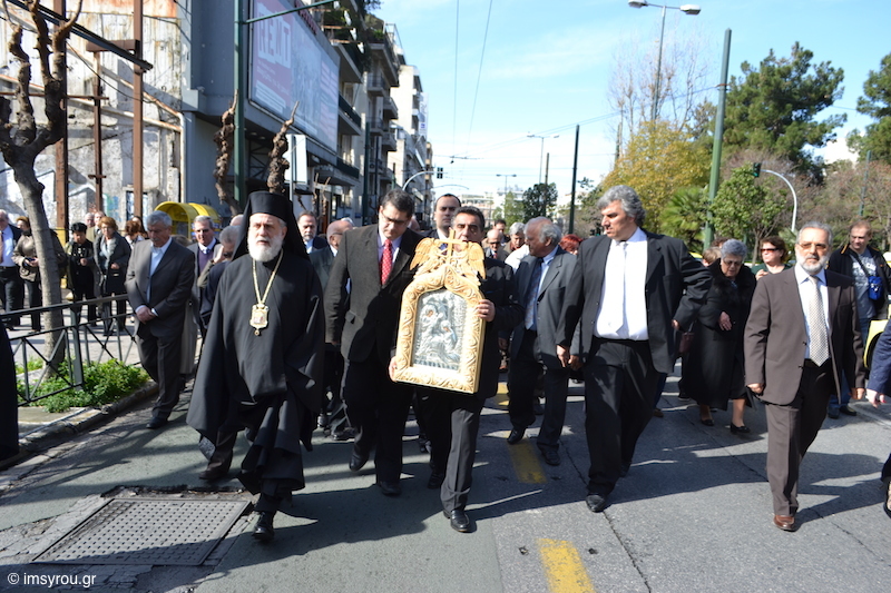 Το ιερό εικόνισμα, μεταφέρθηκε με λιτανευτική πομπή στα γραφεία της αδελφότητας Τηνίων που βρίσκονται επί της λεωφόρου Αλεξάνδρας.