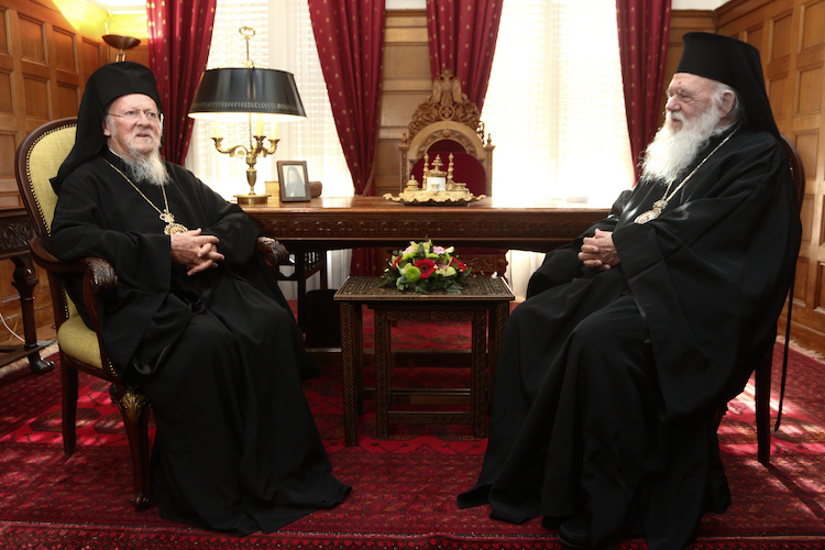 Τον Οικουμενικό Πατριάρχη κ. Βαρθολομαίο υποδέχτηκε σήμερα το απόγευμα στην Αρχιεπισκοπή ο Αρχιεπίσκοπος Αθηνών και πάσης Ελλάδος κ. Ιερώνυμος.