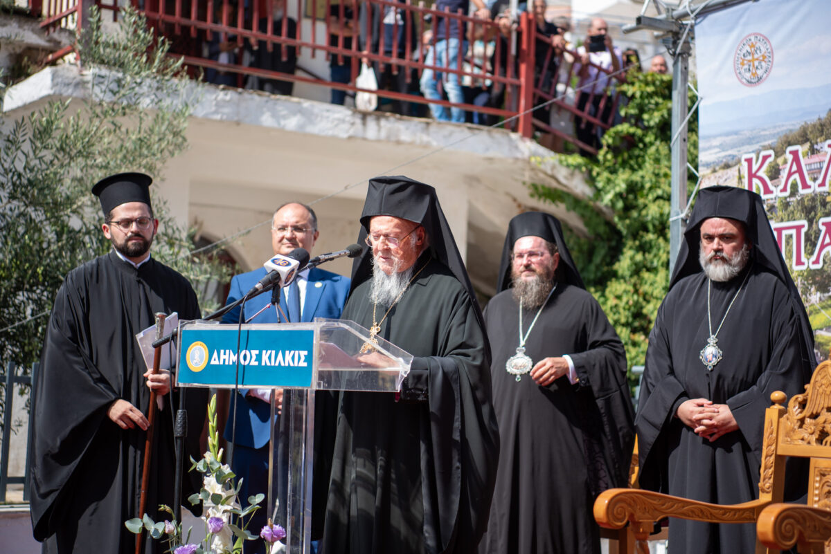 Μετά το πέρας της Δοξολογίας, ο Σεβ. Ποιμενάρχης του Κιλκίς κ. Βαρθολομαίος προσεφώνησε τον Παναγιώτατο, εκφράζοντας τα αισθήματα υιικής αγάπης για την ευλογητή παρουσία του στον πανηγυρικό εορτασμό των 100 ετών.