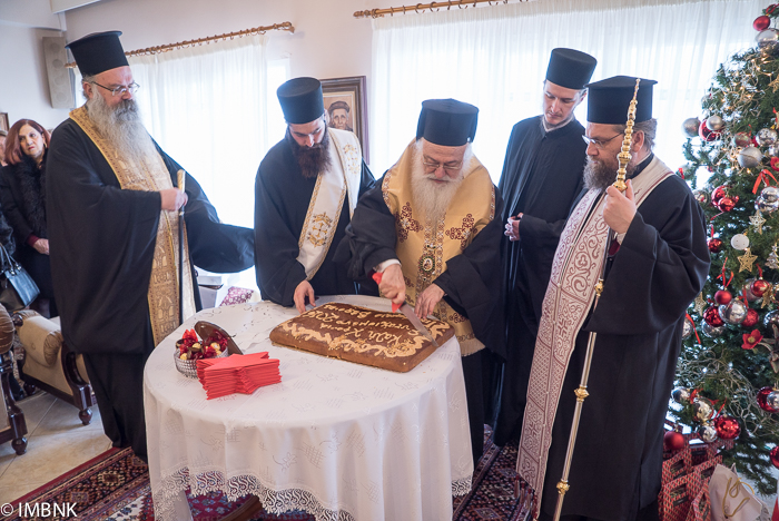 Ο Σεβασμιώτατος Μητροπλίτης Βεροίας, Ναούσης και Καμπανίας κ. Παντελεήμων και έκοψε την καθιερωμένη βασιλόπιτα για τα μέλη του Διοικητικού Συμβουλίου του Γηροκομείου και του Αδελφάτου, τους εργαζομένους στο Ίδρυμα και τους τροφίμους.