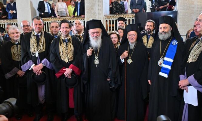 Οικουμενικός Πατριάρχης και Αρχιεπίσκοπος στην αναγόρευση του Αυστραλίας Μακαρίου σε επίτιμο Διδάκτορα του ΕΚΠΑ
