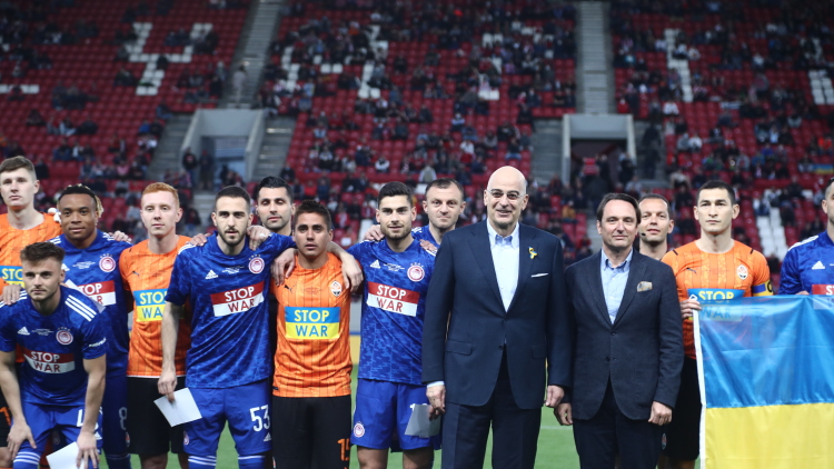 «Η ΠΑΕ ΟΛΥΜΠΙΑΚΟΣ ενημερώνει ότι τα έσοδα του «Αγώνα για την Ειρήνη» με τη Σαχτάρ Ντόνετσκ, ύψους 102,000 ευρώ θα διατεθούν αποκλειστικά για την παροχή ανθρωπιστικής βοήθειας για τα θύματα καθώς και για τις ανάγκες των προσφύγων του πολέμου».