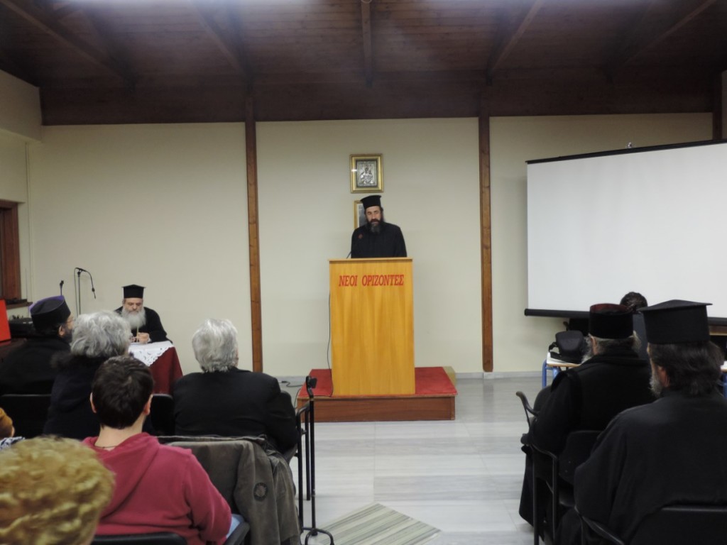 Ο ομιλητής αναφέρθηκε στην προσπάθεια του ανθρώπου να πετύχει την κάθαρση των παθών του, που θα τον οδηγήσει στη θέωση, χρησιμοποιώντας ως οδηγό την ασκητική και νηπτική παράδοση της εκκλησίας, όπως επίσης και στην εξέλιξη της μοναστικής ζωής και άσκησης.