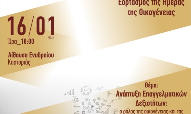Το Κέντρο Συμβουλευτικής Συμπαράστασης Νέων & Γονέων του Γραφείου Νεότητος της Ιεράς Μητροπόλεως Καστορίας έχει την τιμή να σας προσκαλέσει στην εσπερίδα που διοργανώνεται με αφορμή τον εορτασμό της Ημέρας της Οικογένειας, υπό την αιγίδα της Ιεράς Μητροπόλεως Καστοριάς και της Διεύθυνσης Δευτεροβάθμιας Εκπαίδευσης Καστοριάς. Η εκδήλωση θα πραγματοποιηθεί, την Παρασκευή 16 Ιανουαρίου 2026 και ώρα […]
