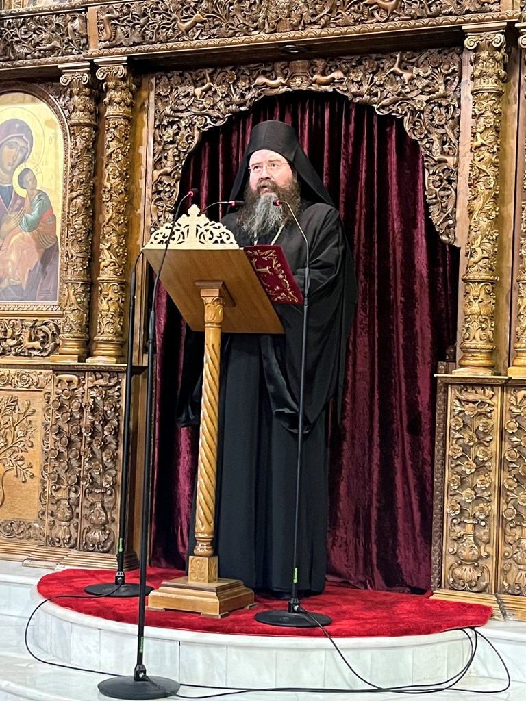 Τη Δευτέρα 9 Μαρτίου 2026 τελέστηκε η Ακολουθία του Μεγάλου Αποδείπνου με ομιλητή τον Αρχιμ. Νικάνορα Παπανικολάου, Ηγούμενο της Ιεράς Μονής Αγίας Τριάδος Σπαρμού Ολύμπου, με θέμα: «Τοῖς ἀγγέλοις αὐτοῦ ἐντελεῖται περὶ σοῦ, τοῦ διαφυλάξαι σὲ ἐν πάσαις ταῖς ὁδοῖς σου». Τον Γέροντα καλωσόρισε ο Προϊστάμενος του Ναού, Αρχιμ. Σεραφείμ Κοντακτσής, εκφράζοντας τη χαρά της ενορίας για την παρουσία του.