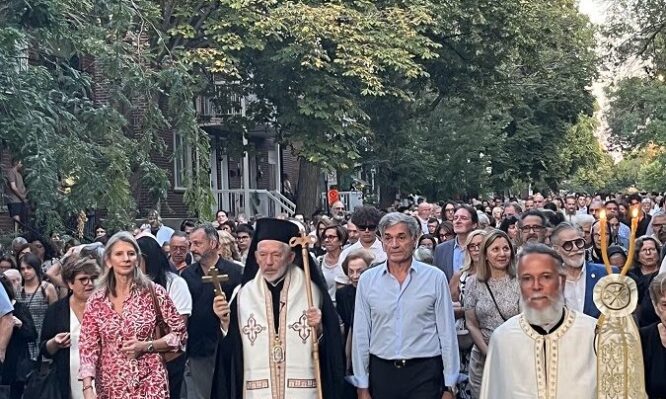 Χιλιάδες ομογενείς από την πόλη του Μόντρεαλ και τα προάστια συμμετείχαν στις Ιερές Ακολουθίες και τη λιτανεία της ιερής εικόνας της Κοιμήσεως της Θεοτόκου στον ομώνυμο ιερό ναό, όπως μαρτυρούν και οι φωτογραφίες.