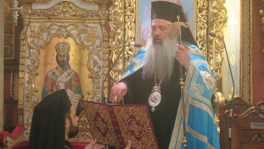 Το θείο Λόγο εκήρυξε ο Σεβασμιώτατος Μητροπολίτης Λαρίσης κ. Ιερώνυμος, ο οποίος προέβη σε μία θεολογικά και ιστορικά τεκμηριωμένη αναφορά στα γεγονότα που οδήγησαν στην σύγκληση της Α’ Οικουμενικής Συνόδου και την καταδίκη του Αρείου από τους θεοφόρους Πατέρες που την συγκρότησαν, μεταξύ των οποίων ήταν και ο τιμώμενος άγιος Δωρόθεος Επίσκοπος Τύρου, και με θερμά λόγια στον Σεβασμιώτατο κ. Δωρόθεο Β’.