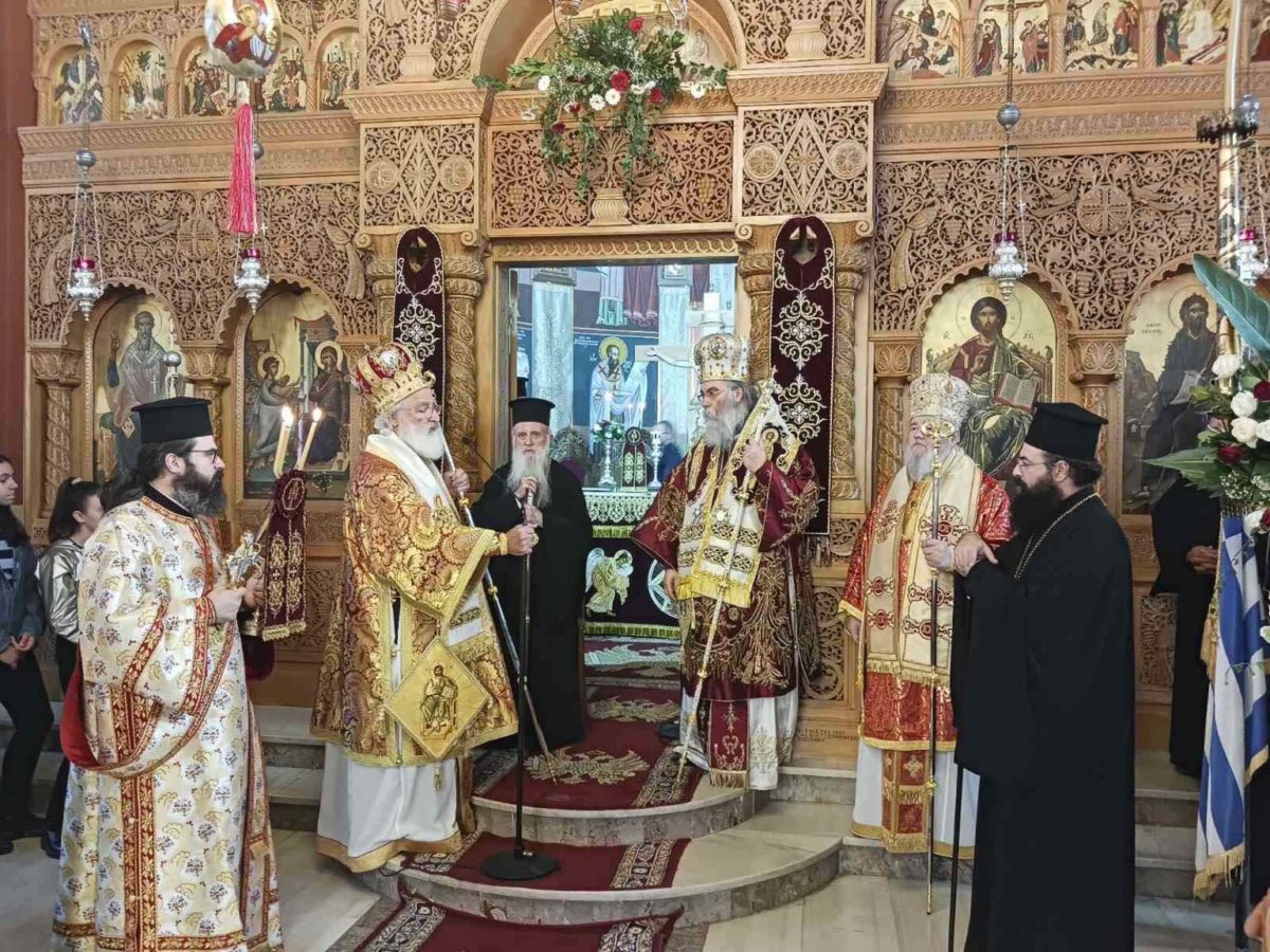 Της πολυαρχιερατικής Θείας Λειτουργίας πρεξήρχε ο οικείος Ποιμενάρχης, Σεβ. κ. Αμφιλόχιος και συλλειτούργησαν, ο Σεβ. Μητροπολίτης Αρκαλοχωρίου κ. Ανδρέας και ο Σεβ. Μητροπολίτης Κυδωνίας και Αποκορώνου κ. Δαμασκηνός.