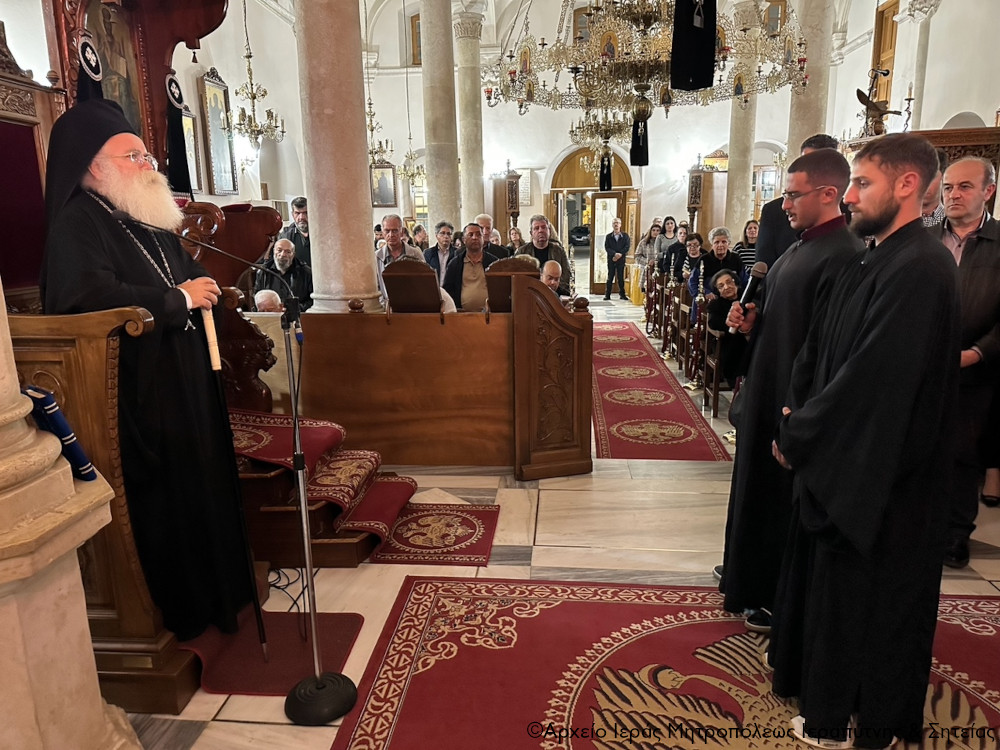 Μετά το πέρας της ακολουθίας ο Σεβ. κ. Κύριλλος ανέλυσε σύντομα το νόημα του τροπαρίου της Κασσιανής και ευχήθηκε στο εκκλησίασμα καλή Μεγάλη Εβδομάδα, ακολουθώντας την πορεία του Κυρίου μας Ιησού Χριστού προς το εκούσιο Πάθος, τον Σταυρό, την Ταφή και την Ανάστασή Του.