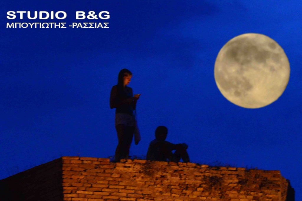 Λίγο πιο ψηλά, στο κάστρο του Ναυπλίου, ρομαντικοί επισκέπτες «φλερτάρουν» με το φεγγάρι που φώτισε την χθεσινή νύχτα.