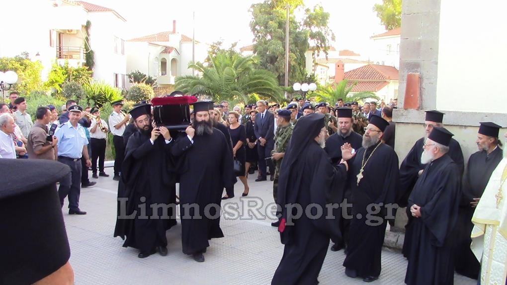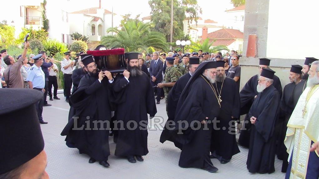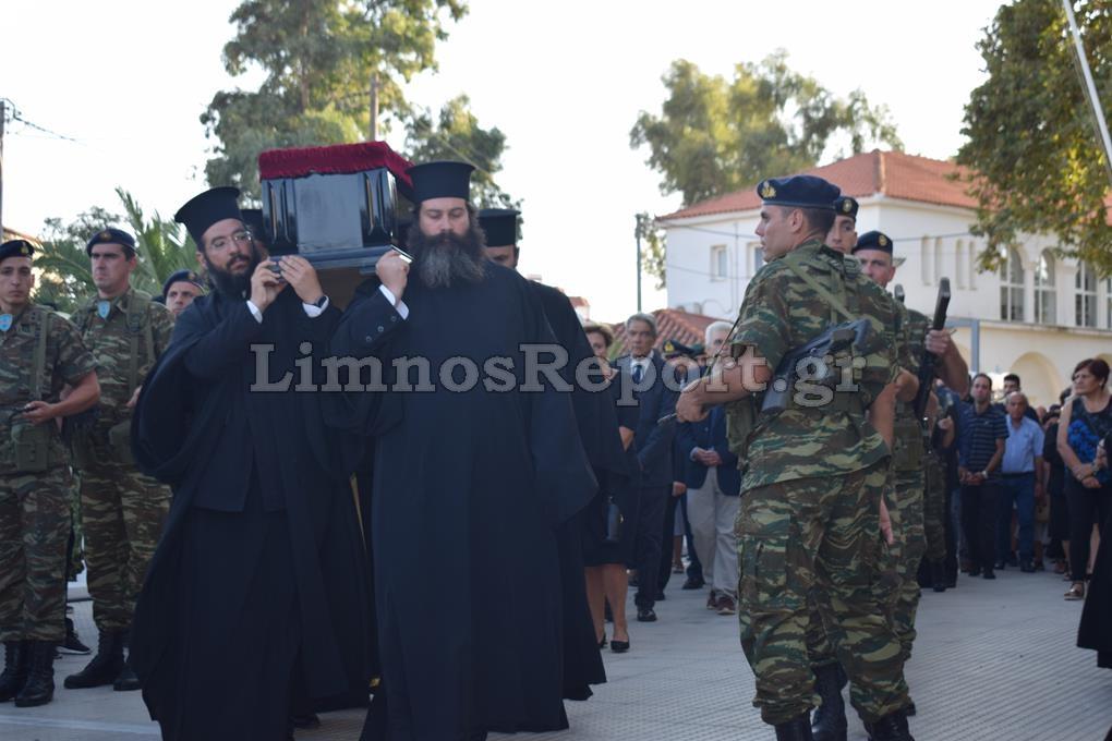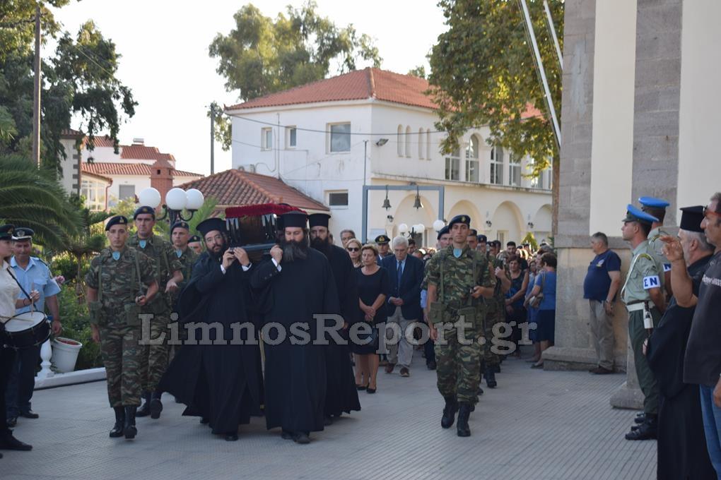 Υπό τους πένθιμους ήχους της Φιλαρμονικής του Δήμου Λήμνου, συνοδεία Στρατιωτικών αγημάτων, το σκήνωμα ……