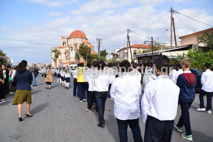 Η φιλαρμονική του Μουσικού Συλλόγου Μούσα, μαζί με τους μαθητές των σχολείων του νησιού και την μπάντα κρουστών του τοπικού Συστήματος Ναυτοπροσκόπων προπορεύονταν όπως κάθε χρόνο, της μεγάλης θρησκευτικής πομπής. Ακολούθησε η φιλαρμονική του Λιμενικού Σώματος που και φέτος τίμησε το νησί και τον Άγιο Νεκτάριο. Ακολούθησε η εικόνα του Αγίου Νεκταρίου, ο κλήρος και οι αρχιερείς, η ουρανιά με την Τιμία Κάρα.