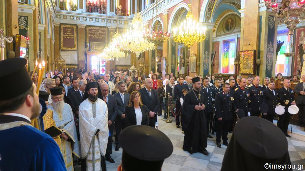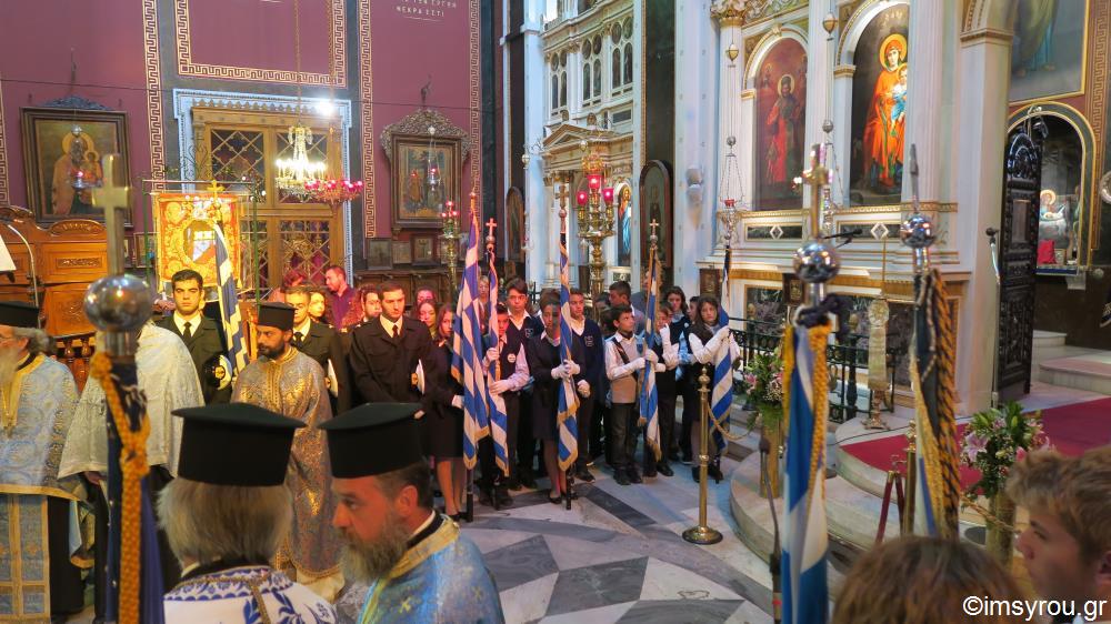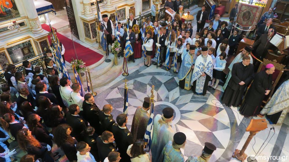 Στον Καθεδρικό Ναό του Αγίου Νικολάου τελέσθηκε το πρωι της 28ης Οκτωβρίου η Λειτουργία και εν συνεχεία η Δοξολογία στην Ερμούπολη της Σύρου.