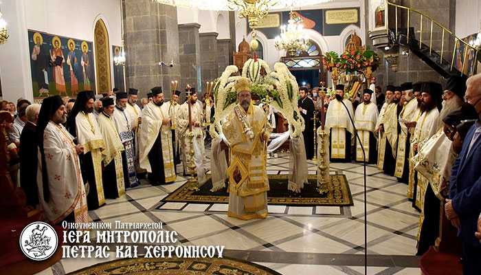 Το εσπέρας της Κυριακής 14 Αυγούστου ο Μέγας Πανηγυρικός Εσπερινός τελέσθηκε συγχοροστατούντων των Αρχιερέων Πισιδίας κ. Ιώβ και Πέτρας και Χερρονήσου κ. Γερασίμου.