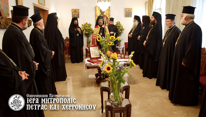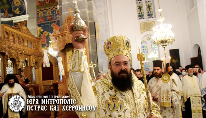 Γι’ Αυτήν βρισκόμαστε κι εμείς εδώ απόψε στο Θεομητορικό ενδιαίτημα της Μεγάλης Παναγίας, το καύχημα και την καθέδρα της Μητροπόλεώς μας, ως ευλαβείς προσκυνητές της θαυματουργού ιεράς εικόνος Της, επικαλούμενοι τις πρεσβείες Της και ψάλλοντας τα ιερά Της εγκώμια. Αυτής αγίαις πρεσβείαις Χριστέ ο Θεός, σώσον τας ψυχάς ημών».