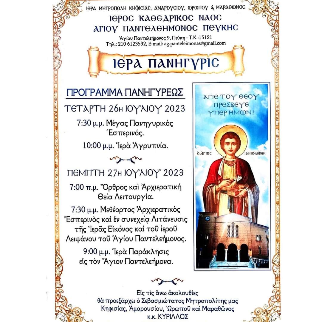 Πανηγύρεις Ἁγίου Παντελεήμονος στη Μητρόπολη Κηφισίας