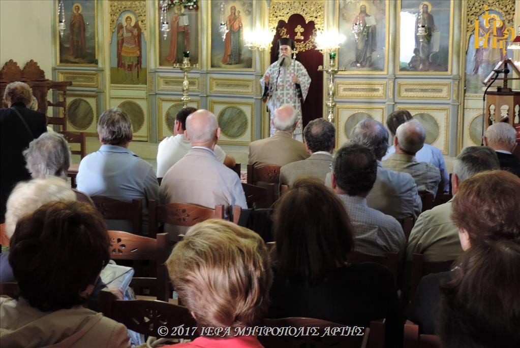 Στο Κήρυγμά του ο Σεβασμιώτατος Μητροπολίτης Άρτης ανεφέρθη στο χωρίο: «τεκνία μου μη αγαπώμεν λόγω μηδέ γλώσση αλλ’ έργω και αληθεία» (Α’ Ιω. γ’,18).