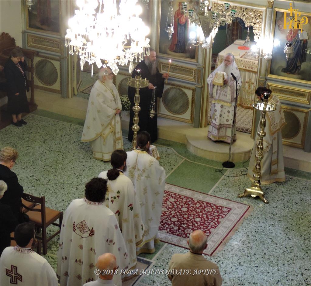 Την Τετάρτη 26 Σεπτεμβρίου 2018, το πρωΐ, στον Ιερό Ναό του Αγίου Ιωάννου του Θεολόγου της πόλεως Άρτης, ετελέσθη πανηγυρική Θεία Λειτουργία, προεξάρχοντος του Σεβασμιωτάτου Μητροπολίτου πρώην Άρτης κ. Ιγνατίου και συλλειτουργούντος του οικείου Ποιμενάρχου, Σεβασμιωτάτου Μητροπολίτου Άρτης κ. Καλλινίκου.