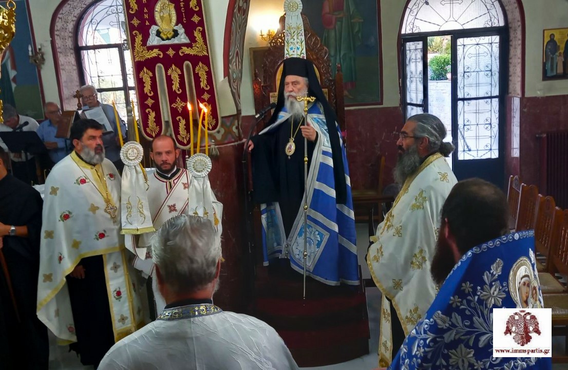 Απευθυνόμενος στους ευλαβείς χριστιανούς της περιοχής, ο σεπτός Ποιμενάρχης μας αναφέρθηκε στην Υπεραγία Θεοτόκο, η οποία μεσιτεύει για την πνευματική ανύψωση και τη σωτηρία όλων όσοι την επικαλούνται ευλαβικά, αποτελώντας παράλληλα κυματοθραύστη, απάνεμο λιμάνι και πηγή γαλήνης.