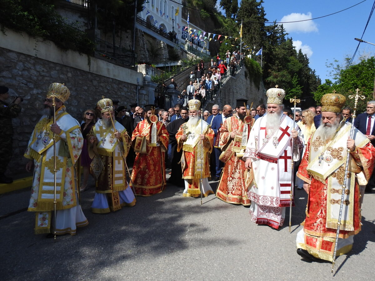 Ιδιαίτερες ευχαριστίες απηύθυνε, επιπλέον, προς τους προσκεκλημένους Σεβασμιωτάτους Μητροπολίτες Πατρών κ. Χρυσόστομο, Νικοπόλεως και Πρεβέζης κ. Χρυσόστομο, Νέας Κρήνης και Καλαμαριάς κ. Ιουστίνο και Παραμυθίας, Φιλιατών, Γηρομερίου και Πάργης κ. Σεραπίωνα, καθώς και προς τον Θεοφιλέστατο Επίσκοπο Κερνίτσης κ. Χρύσανθο, οι οποίοι με την ευλογημένη παρουσία τους λάμπρυναν τις Πανηγυρικές Ακολουθίες, καταθέτοντας λόγο πνευματικής οικοδομής προς τον λαό του Θεού και αποδεικνύοντας εμπράκτως την ενότητα της Εκκλησίας.