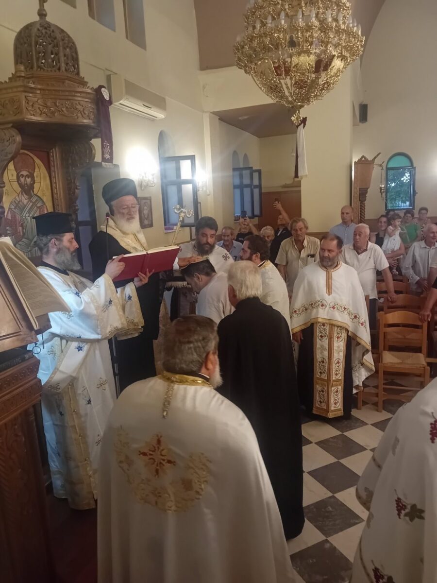 Την Κυριακή 24 Αυγούστου εσπέρας, παραμονή του Αγίου Αποστόλου Τίτου, ο Σεβ. Μητροπολίτης μας κ. Ανδρέας, χοροστάτησε του πανηγυρικού εσπερινού στον ομώνυμο πανηγυρίζοντα Ιερό Ναό στα Καλύβια Μονοφατσίου. Στον λόγο του ο Σεβασμιώτατος αναφέρθηκε στον τιμώμενο Άγιο και στην πνευματική παρακαταθήκη που άφησε στο νησί μας ως πρώτος επίσκοπος. Στην συνέχεια, ο σεπτός Ποιμενάρχης μας χειροθέτησε Αναγνώστη τον επι σειρά ετών ιεροψάλτη της ενορίας, κ. Στέλιο Καλαϊτζάκη.