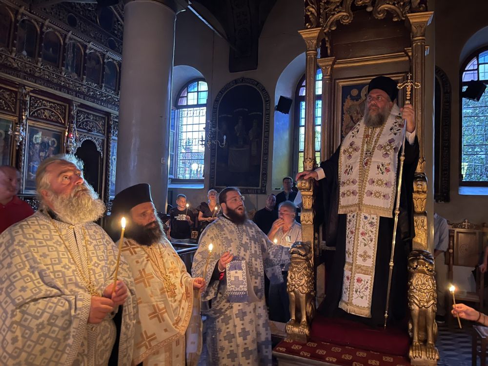 Κατά τη διάρκεια του Πανηγυρικού Εσπερινού, ο οποίος τελέσθηκε Χοροστατούντος του Σεβασμιωτάτου Μητροπολίτου Τρίκκης, Γαρδικίου και Πύλης κ. Χρυσοστόμου συμμετείχε πλήθος πιστών και ευλαβών προσκυνητών οι οποίοι κατέκλισαν και εφέτος τον προαύλιο χώρο του Ναού περιμένοντας με ευλάβεια να προσκυνήσουν την Εικόνα της Παναγίας «Φανερωμένης», η οποία και φυλάσσεται στον Ιερό αυτό Ναό της Ιεράς μας Μητροπόλεως.