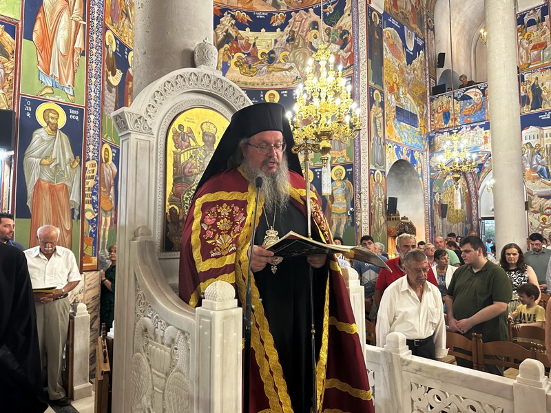 Στην Ακολουθία χοροστάτησε ο Σεβασμιώτατος Μητροπολίτης Λαρίσης και Τυρνάβου κ. Ιερώνυμος, συγχοροστατούντων των Σεβασμιωτάτων Μητροπολιτών  Μεσσηνίας κ. Χρυσοστόμου, Ιερισσού, Αγίου Όρους και Αρδαμερίου κ. Θεοκλήτου, του Θεοφιλεστάτου Επισκόπου Κεράμων κ.Βαρθολομαίου και του Παροναξίας κ. Καλλινίκου.