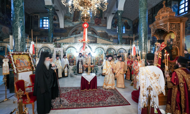 Χοροστάτησε ο Σεβασμιώτατος Μητροπολίτης Λαρίσης και Τυρνάβου κ. Ιερώνυμος, ο οποίος κήρυξε και το θείο Λόγο, ενώ συγχοροστάτησαν οι Σεβασμιώτατοι Μητροπολίτες Πειραιώς και Φαλήρου κ. Σεραφείμ και Βεροίας, Ναούσης και Καμπανίας κ. Παντελεήμων.