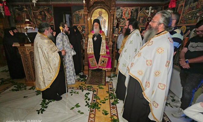 Το Σάββατο 14 Ιουνίου το απόγευμα ο Σεβασμιώτατος Μητροπολίτης Βεροίας, Ναούσης και Καμπανίας κ. Παντελεήμων χοροστάτησε στον πανηγυρικό Εσπερινό και κήρυξε το θείο Λόγο στην πανηγυρίζουσα Ιερά Μονή Αγίων Πάντων Βεργίνας.