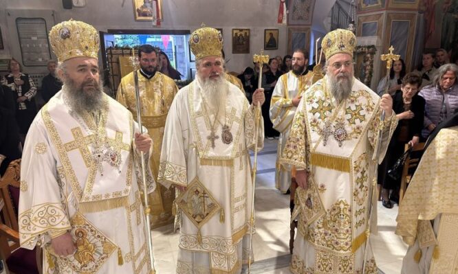 Την Κυριακή 18 Μαΐου 2025, στον πανηγυρίζοντα Ιερό Προσκυνηματικό Ναό Αγίου Βησσαρίωνος Τρικάλων, τελέστηκε ο Όρθρος, και ακολούθως η Πανηγυρική Αρχιερατική Θεία Λειτουργία. Προεξήρχε ο Σεβασμιώτατος Μητροπολίτης Νέας Κρήνης και Καλαμαριάς κ. Ιουστίνος, ενώ συλλειτούργησαν οι Σεβασμιώτατοι Μητροπολίτες Φλωρίνης, Πρεσπών και Εορδαίας κ. Ειρηναίος και Τρίκκης, Γαρδικίου και Πύλης κ. Χρυσόστομος. Κατά τη διάρκεια της […]