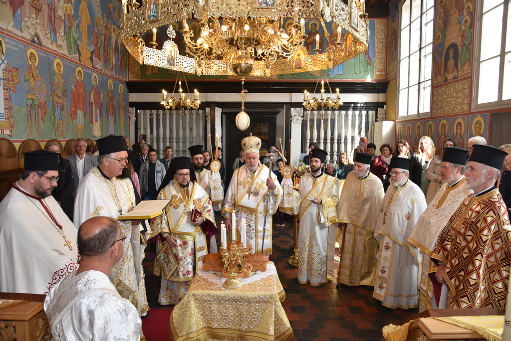 Της Θείας Λειτουργίας προεξήρχε ο Σεβασμιώτατος Μητροπολίτης Βελγίου και Έξαρχος Κάτω Χωρών και Λουξεμβούργου κ. Αθηναγόρας, συλλειτουργούντος του Θεοφιλεστάτου Επισκόπου Απολλωνιάδος κ. Ιωακείμ, βοηθού Επισκόπου της Ιεράς Μητροπόλεως, και συμπαραστατούντων του Αρχιμανδρίτου κ. Ρωμανού Κενανίδη (Θεσσαλονίκη), των Πρωτοπρεσβυτέρων Bart D’huyvetter, Bernard Peckstadt (Μπρυζ), Αθανασίου Καρατζογιάννη (Maasmechelen) και Κωνσταντίνου Κενανίδη (Βρυξέλλες), των Πρεσβυτέρων Ανδρέα Dhoe (Οστάνδη) και Michael Lomax (Βρυξέλλες) καθώς και του Αρχιδιακόνου Αιμιλιανού Χατζηβασιλείου και του Διακόνου Αδαμαντίου Καρφή.