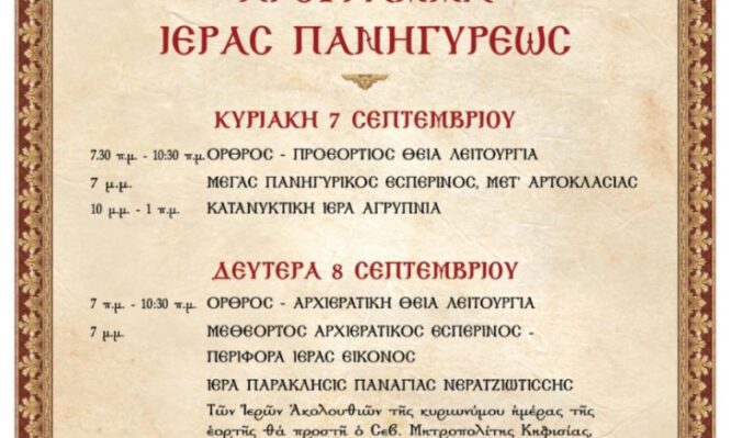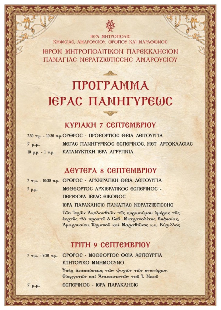 Πανήγυρις Ι. Μητροπολιτικού Παρεκκλησίου Παναγίας Νεραντζιωτίσσης στο Μαρούσι