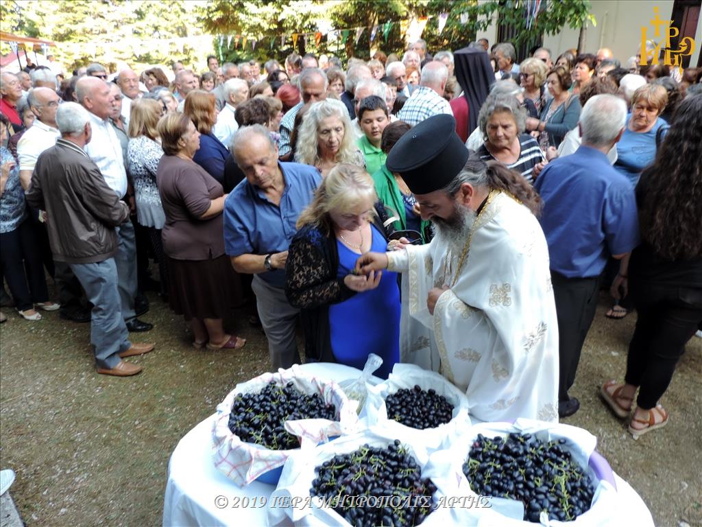 Μετά το πέρας της Θείας Λειτουργίας, ο Σεβασμιώτατος κατά το έθος, ευλόγησε τα σταφύλια, τα οποία και διενεμήθησαν, ως ευλογία, στους πιστούς.