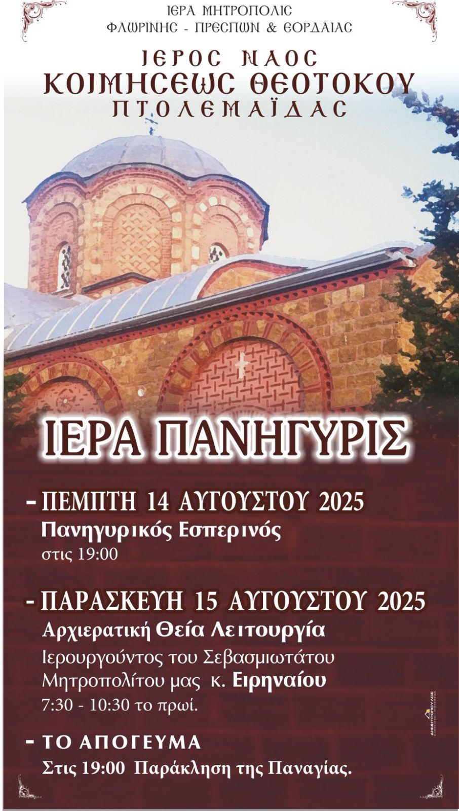 Πανήγυρις του Ιερού Ναού Κοιμήσεως της Θεοτόκου Φλωρίνης Δόγμα 13 Αυγούστου 2025 16:46 Tags: ΜΗΤΡΟΠΟΛΗ ΦΏΡΙΝΗΣ