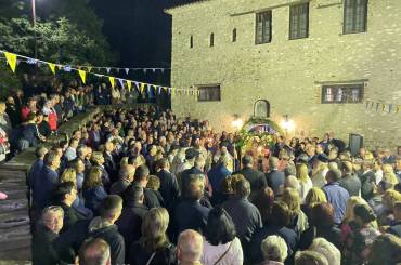 τοριᾶς κ. Νικόλαος Ἔξαρχος, ὁ Πρόεδρος τοῦ χωριοῦ κ. Ἰωάννης Γκόγκας, ὑποψήφιοι γιά τίς αὐτοδιοικητικές ἐκλογές καί ἑκατοντάδες προσκυνητές, οἱ ὁποῖοι τόσο στόν Ἑσπερινό, ὅσο καί στήν Θεία Λειτουργία κατέκλυσαν τό Καθολικό τῆς Ἱερᾶς Μονῆς ἀλλά καί τόν προαύλιο χῶρο αὐτῆς.