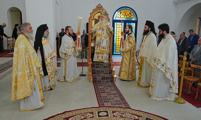 Την πανηγυρική θεία Λειτουργία τέλεσε ο Σεβασμιώτατος Μητροπολίτης Βεροίας, Ναούσης και Καμπανίας κ. Παντελεήμων, ο οποίος κήρυξε και το θείο Λόγο.