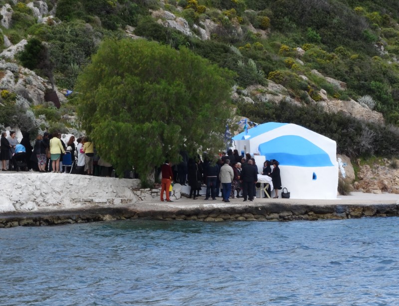 Εορτασμός Αγίου Γεωργίου στο γραφικό και ιδιαίτερα ευπρεπισμένο ομώνυμο Ιερό Ναύδριο του Αγίου Γεωργίου στην περιοχή “Δρυμώνας” Λέρου, το οποίο βρίσκεται κυριολεκτικά μέσα στη θάλασσα.