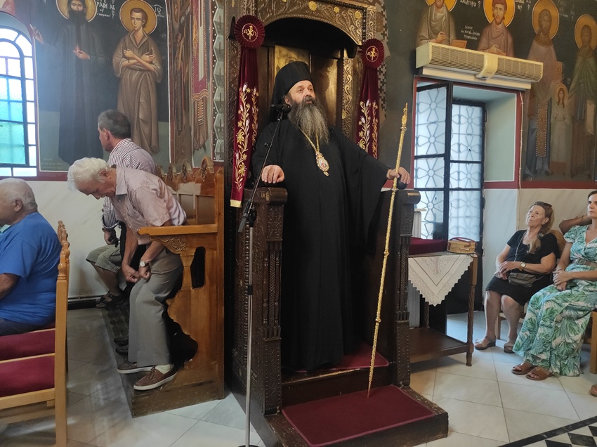 Ο Θεοφιλέστατος Επίσκοπος Κεγχρεών κ. Αγάπιος την Δευτέρα, 7 Αυγούστου 2023, χοροστάτησε στον Εσπερινό και στην Ι. Παράκληση, που επακολούθησε, στον Ενοριακό Ι. Ναό Μεταστάσεως της Θεοτόκου Αλμυρής, που ετέλεσε ο εκεί Εφημέριος π. Γεώργιος Μαρινάκης, συνοδευόμενος από τον Διάκονο π. Χρήστο Χίλια.