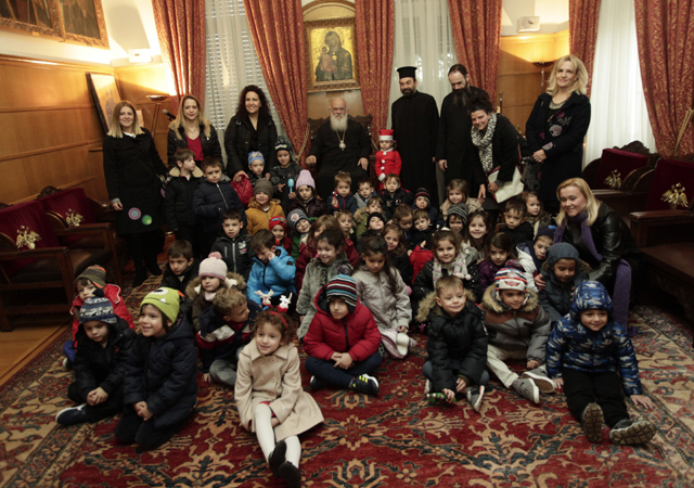 Από νωρίς το πρωί έφταναν στην Αρχιεπισκοπή παιδιά και νέοι, για να ευχηθούν στον Αρχιεπίσκοπο καλά Χριστούγεννα. Συγκεκριμένα επισκέφθηκαν τον Αρχιεπίσκοπο τα παιδιά από το Ίδρυμα Περιθάλψεως Ατόμων με Νοητική Υστέρηση ή με σύνδρομο Down της Αρχιεπισκοπής «Μαρία Κόκκορη», η παιδική χορωδία της Σχολής Βυζαντινής Μουσικής της Αρχιεπισκοπής, καθώς και η χορωδία του Κέντρου Εκκλησιαστικής Διακονίας Οινοφύτων. Τα παιδιά του Κέντρου Εκκλησιαστικής Διακονίας ευχήθηκαν στον Αρχιεπίσκοπο καλά Χριστούγεννα και τον ευχαρίστησαν για τη μέριμνα και την στήριξή του, ενώ αναφέρθηκαν στην σημαντική συμβολή και συμπαράσταση του Πρωτοσυγκέλλου της Αρχιεπισκοπής Αρχιμανδρίτη Συμεών Βολιώτη. Τον Αρχιεπίσκοπο επισκέφθηκαν, επίσης, μαθητές από την Ριζάρειο Σχολή, το Αρσάκειο, τον Βρεφονηπιακό Σταθμό Βαφειαδάκειον, η ομάδα του Καστελόριζου, η Παιδική Νεανική Συμφωνική Ορχήστρα της Αρχιεπισκοπής, καθώς και μαθητές από τα Εκπαιδευτήρια Γείτονα, τα οποία συνόδευαν δάσκαλοι του σχολείου και η Διευθύντρια του Κέντρου Στήριξης Οικογένειας της Αρχιεπισκοπής κ. Μαίρη Πίνη. Το ΚΕΣΟ, εξάλλου, αναπτύσσει δράσεις κοινωνικού ενδιαφέροντος σε συνεργασία με πολλά σχολεία της Αττικής. Ο Αρχιεπίσκοπος ευχαρίστησε όλα τα παιδιά και τους φορείς που τον επισκέφθηκαν και τους ευχήθηκε δύναμη να συνεχίσουν το έργο τους και χρόνια πολλά για την εορτή των Χριστουγέννων.