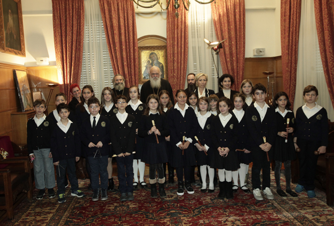 Μαθητές από διάφορα σχολεία της Αττικής και μέλη από χορωδίες φορέων και συλλόγων έψαλλαν τα κάλαντα και παραδοσιακά χριστουγεννιάτικα τραγούδια στον Αρχιεπίσκοπο Αθηνών και πάσης Ελλάδος κ. Ιερώνυμο, με αφορμή την εορτή των Χριστουγέννων.