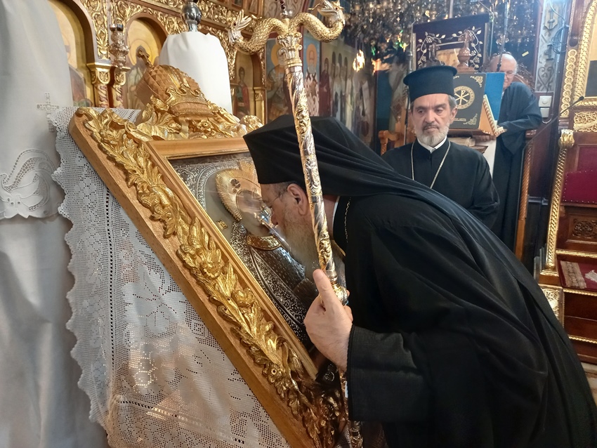 Ο Σεβασμιώτατος στο κήρυγμά του αναφέρθηκε στην παλαιά συνήθεια των Πιστών να μένουν στα προσκυνήματα και στους Ι. Ναούς, που είχαν αγιάσματα, για μέρες ολόκληρες προκειμένου να εκπληρώσουν το τάμα τους και να λάβουν την χάρη και την ευλογία τους. Τόνισε ακόμα πως, ότι επιτελείται εντός της Εκκλησίας, στο όνομα του Ιησού Χριστού, της Παναγίας Μητέρας Του και με την επίκληση των πρεσβειών των Αγίων μας, δεν είναι τυχαίο αλλά αποτέλεσμα της μεγάλης Πίστεως των ανθρώπων προς τον Κύριο και Θεό μας Ιησού Χριστό που περιμένουν το έλεος, την αγάπη, την στοργή, την προστασία και την θεραπεία. Γι’ αυτό δεν υφίσταται καμία σπουδή και καμία ουσιαστική ανάγκη για αναζήτηση της σωτηρίας «δεξιά και αριστερά» σε όλων των ειδών τους περίεργους, αυτοπροτεινόμενους και απρόσκλητους «σωτήρες», αλλά με την απλή προσέλευση στους Ι. Ναούς, προσευχόμενοι και νηστεύοντες, κατά το δυνατόν, εκζητώντας την χάρι, την ευλογία, το έλεος και τις πρεσβείες της Υπεραγίας Θεοτόκου θα οδηγηθούμε άπαντες στην Βασιλεία των Ουρανών!