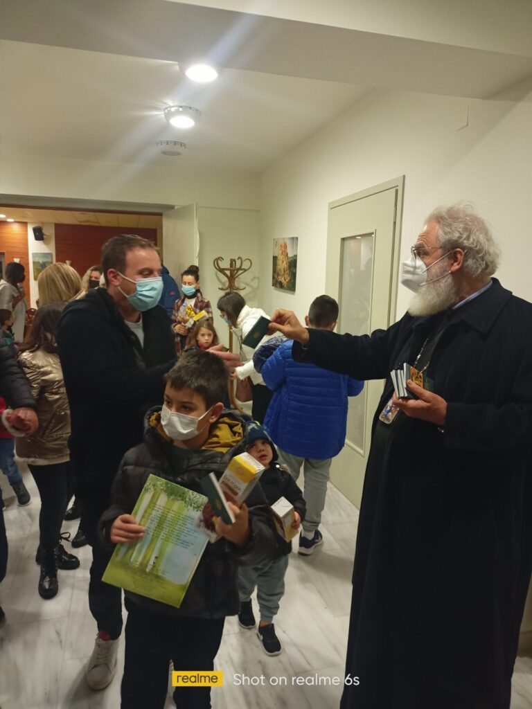 Στο τέλος των εκδηλώσεων ο Σεβ. Μητροπολίτης μας μοίρασε ημερολόγια σε γονείς και παιδιά ευχόμενος να εορτάσουμε με υγεία τα Χριστούγενννα.