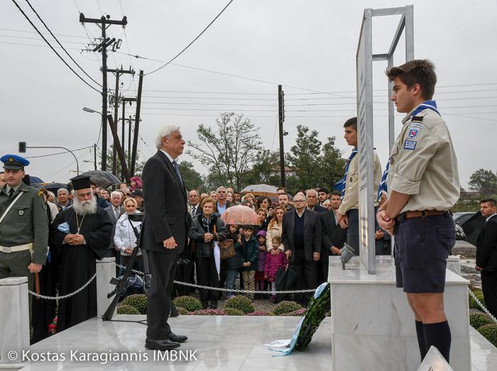 Ο πρόεδρος της Δημοκρατίας κατέθεσε στεφάνι στη στήλη και στη συνέχεια ακολούθησε μαθητική παρέλαση.