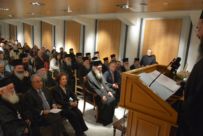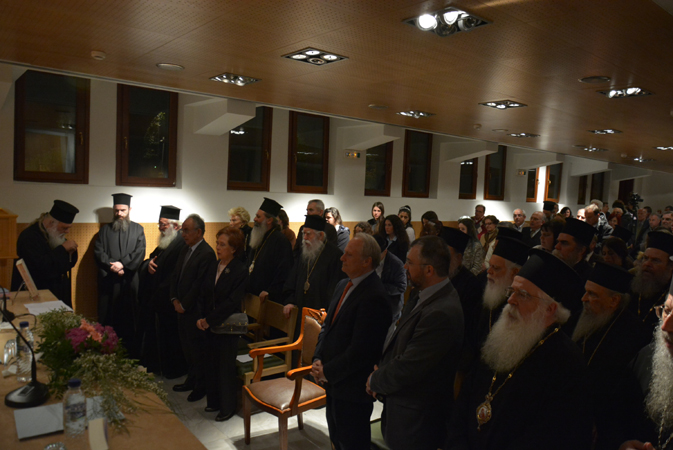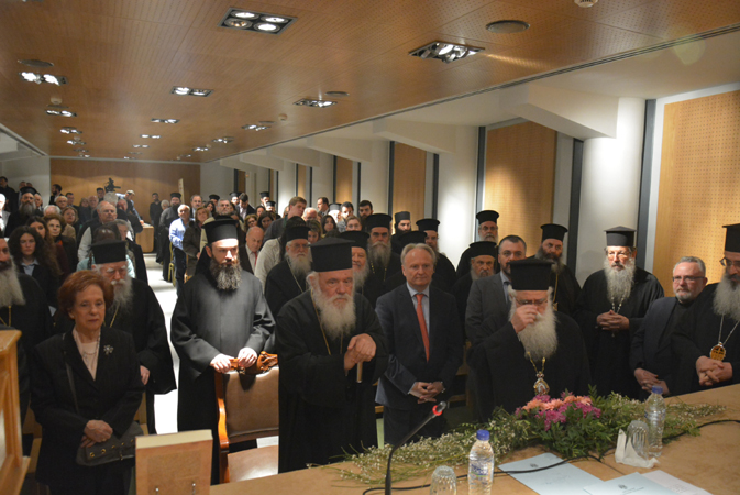 Παρέστησαν: ο Μακαριώτατος Αρχιεπίσκοπος Αθηνών και πάσης Ελλάδος κ. Ιερώνυμος. Οι Σεβασμιώτατοι Μητροπολίτες, Ηλείας κ. Γερμανός, Μυτιλήνης, Ερεσσού και Πλωμαρίου κ. Ιάκωβος, Λαρίσης και Τυρνάβου κ. Ιγνάτιος, Δρυϊνουπόλεως, Πωγωνιανής και Κονίτσης κ. Ανδρέας, Δημητριάδος και Αλμυρού κ. Ιγνάτιος, Φλωρίνης, Πρεσπών και Εορδαίας κ. Θεόκλητος, Θηβών και Λεβαδείας κ. Γεώργιος, Άρτης κ. Καλλίνικος, Ιλίου, Αχαρνών και Πετρουπόλεως κ. Αθηναγόρας, Λαγκαδά, Λητής και Ρεντίνης κ. Ιωάννης, Ιερισσού, Αγίου Όρους και Αρδαμερίου κ. Θεόκλητος, Κεφαλληνίας κ. Δημήτριος. Οι Πανιερώτατοι Μητροπολίτες, Θερμοπυλών κ. Ιωάννης και Βελεστίνου κ. Δαμασκηνός και ο Θεοφιλέστατος Επίσκοπος Μεθώνης κ. Κλήμης, Αρχιγραμματεύς της Ιεράς Συνόδου της Εκκλησίας της Ελλάδος, καθώς καί ακαδημαϊκοί, κληρικοί και λαϊκοί.