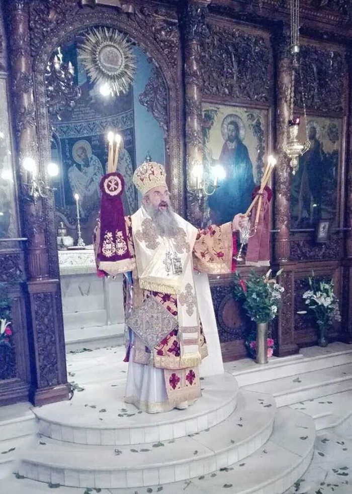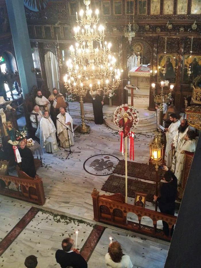 Σύμφωνα με το Τυπικό της ημέρας αυτής, το εκκλησίασμα κατά τα Κεκραγάρια του Εσπερινού θυμίασε ο ίδιος ο Επίσκοπός μας κ. Ευγένιος. Το Ευαγγέλιο του Εσπερινού απέδωσαν σε οκτώ γλώσσες και έψαλλαν σε ηρωικό εξάμετρο στην ομηρική διάλεκτο Ιερείς της Μητροπόλεώς μας.