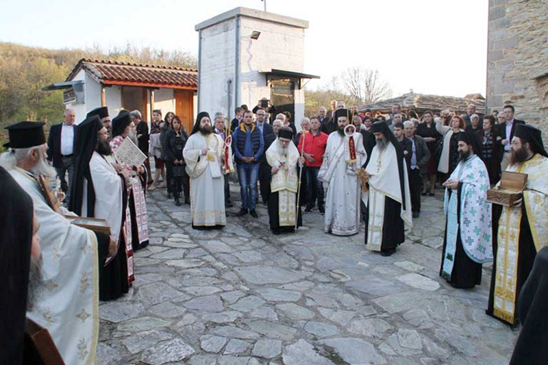 Το απόγευμα της Κυριακής του Πάσχα ο Σεβασμιώτατος μετέβη στην Ιερά Μονή Αρχαγγέλου Μιχαήλ στην περιοχή της Αλμωπίας, όπου και τέλεσε τον Εσπερινό της Αγάπης. Προς το τέλος της ακολουθίας πραγματοποιήθηκε λιτάνευση των ιερών λειψάνων γύρω από το Καθολικό της Μονής, κατά την οποία εψάλησαν τα απόστιχα του Εσπερινού, ενώ στην είσοδο του Καθολικού έγινε από τον Σεβασμιώτατο η απόλυσις.